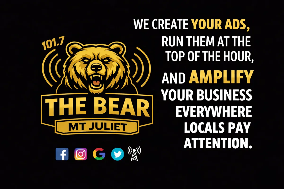 101.7 The Bear is our go-to station. The local ads don’t feel annoying — they actually feel helpful. When a business advertises on The Bear, it instantly gives them credibility. You know they’re part of the Mt. Juliet community.